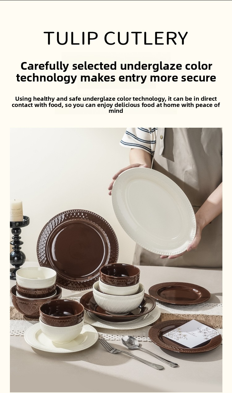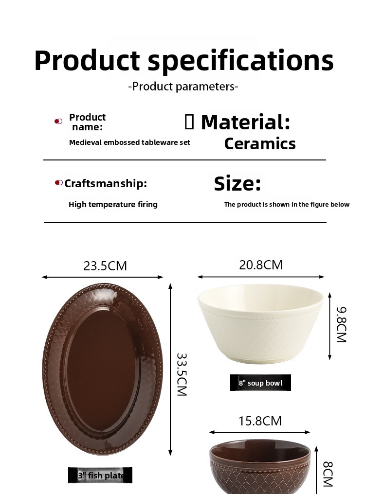 Mid-century style embossed ceramic tableware set, household ceramic underglaze color tableware