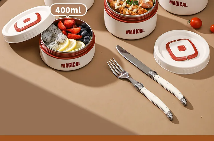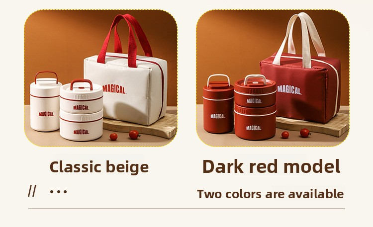 4-piece set (2 large and 2 small) + tableware + insulation bag[Red and White]