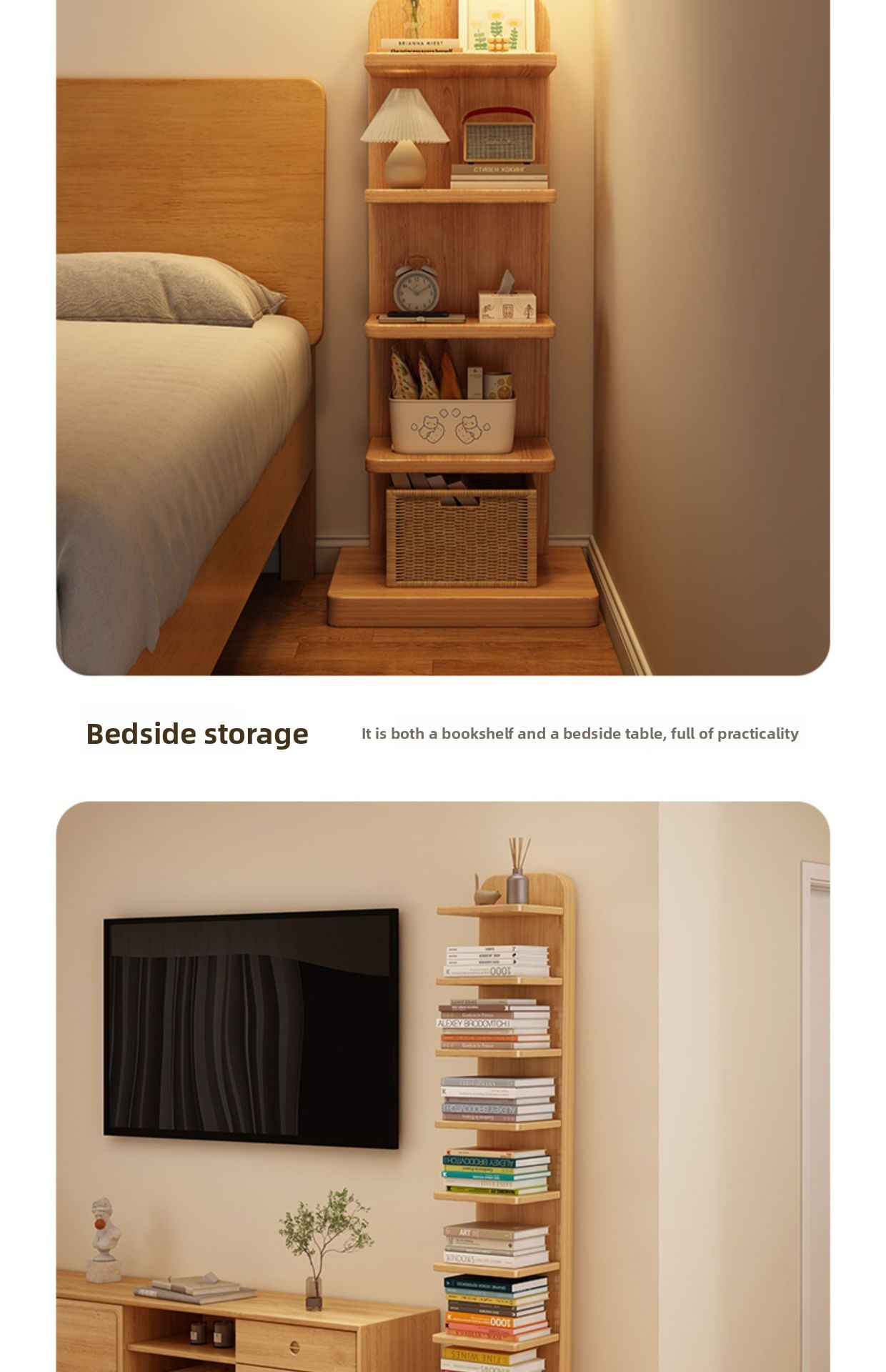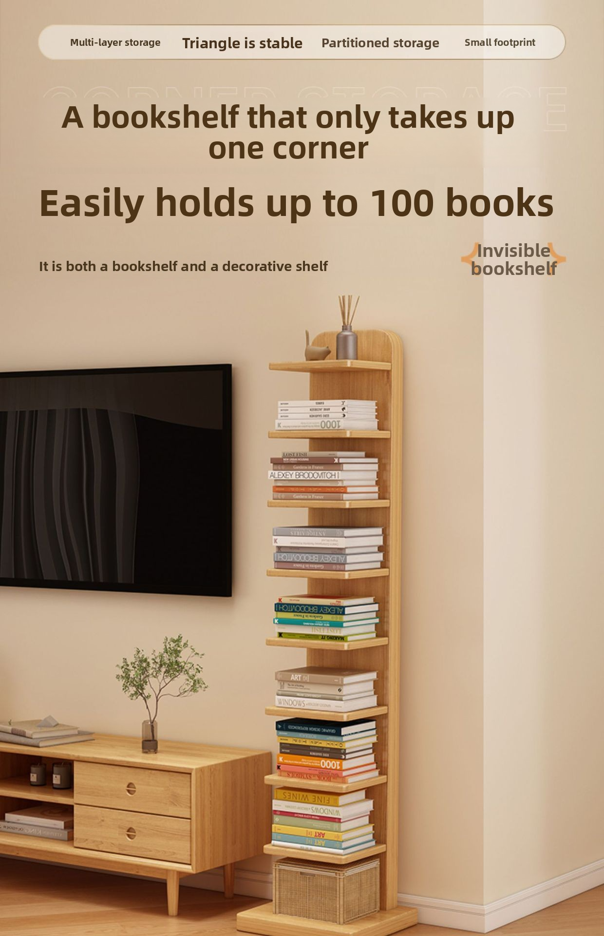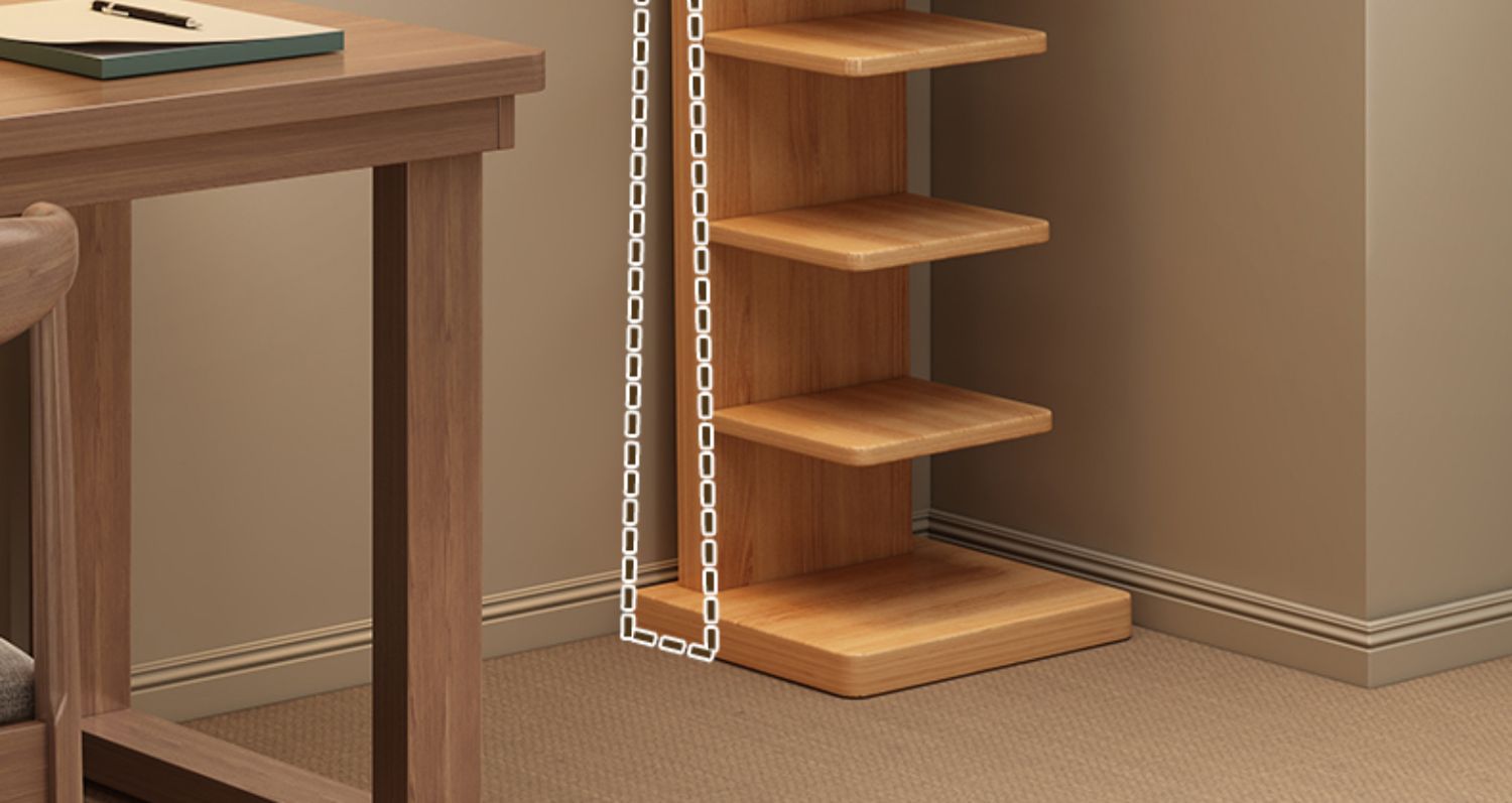【Thicker Bottom Plate for More Stability】9-Layer All Solid Wood Invisible Bookshelf - Cherry Wood Color (Anti-Tipping Device Included as a Gift)