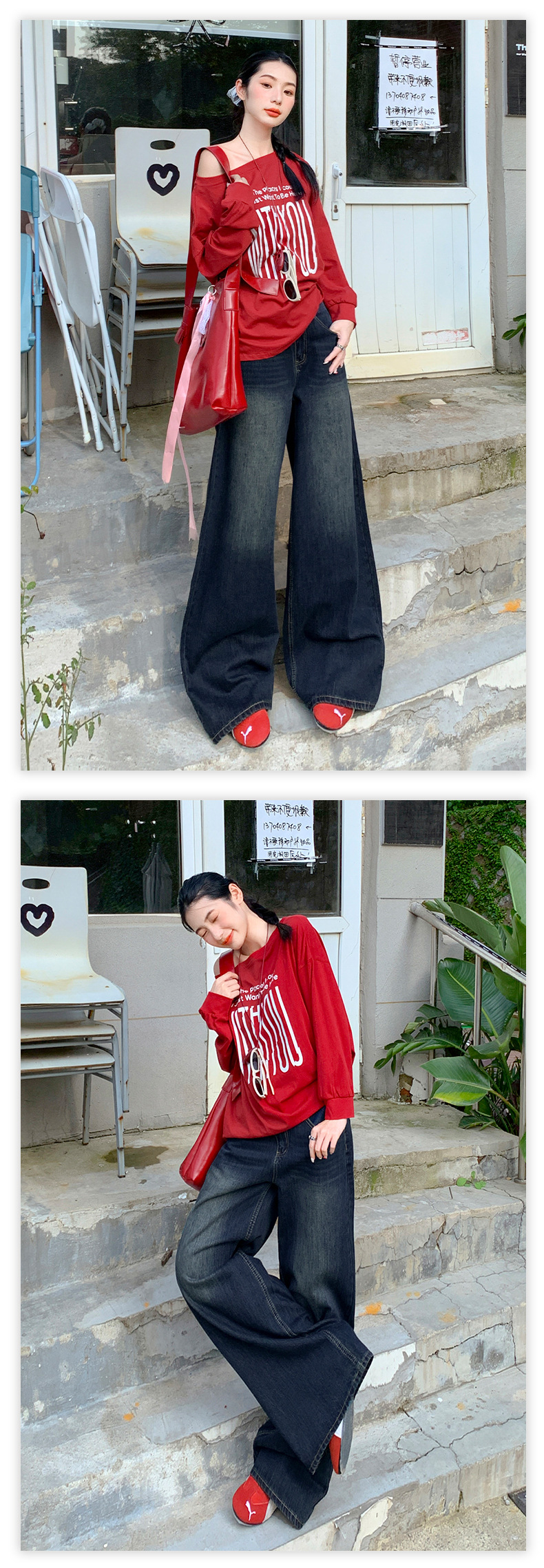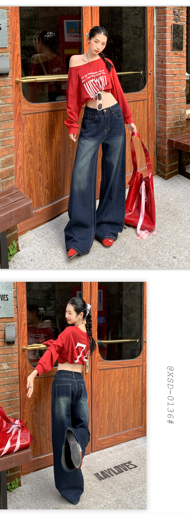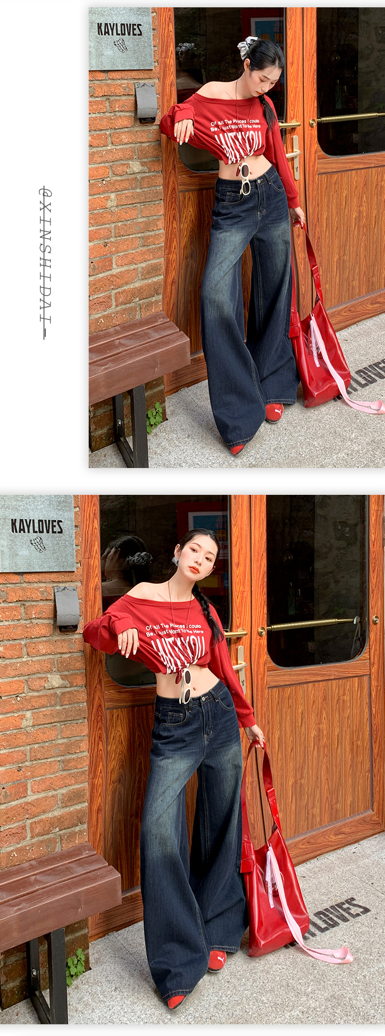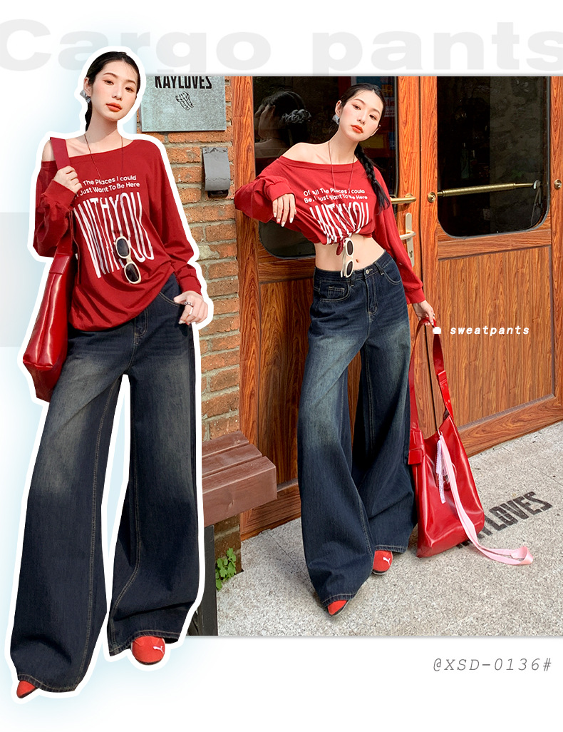 Vintage blue new high-waisted straight-leg loose wide-leg pants