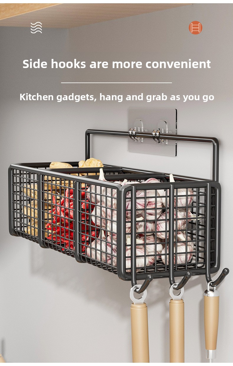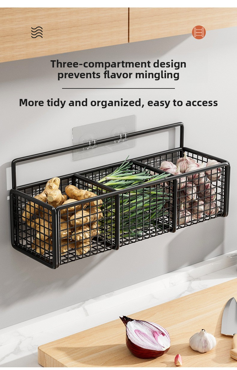 Kitchen shelf, punch-free wall-mounted condiment rack, wall-mounted vegetable basket