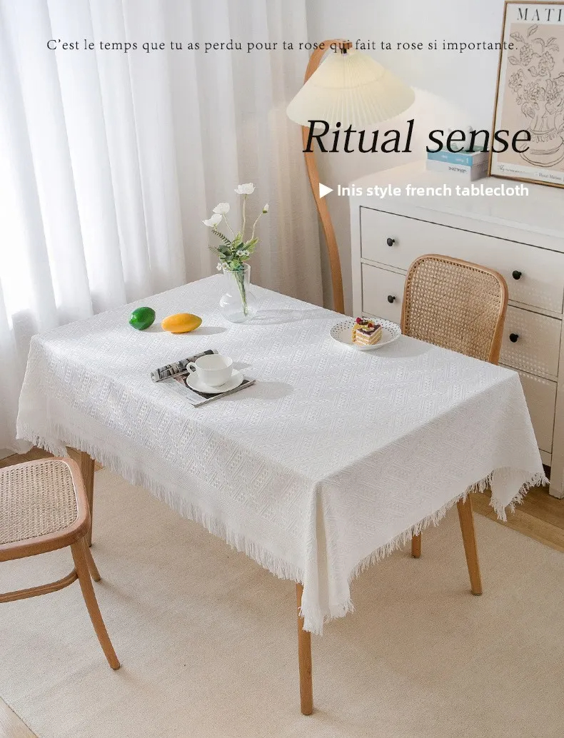 Coffee table cloth with tassels, wear-resistant tablecloth, dust-proof waffle tablecloth, round tablecloth