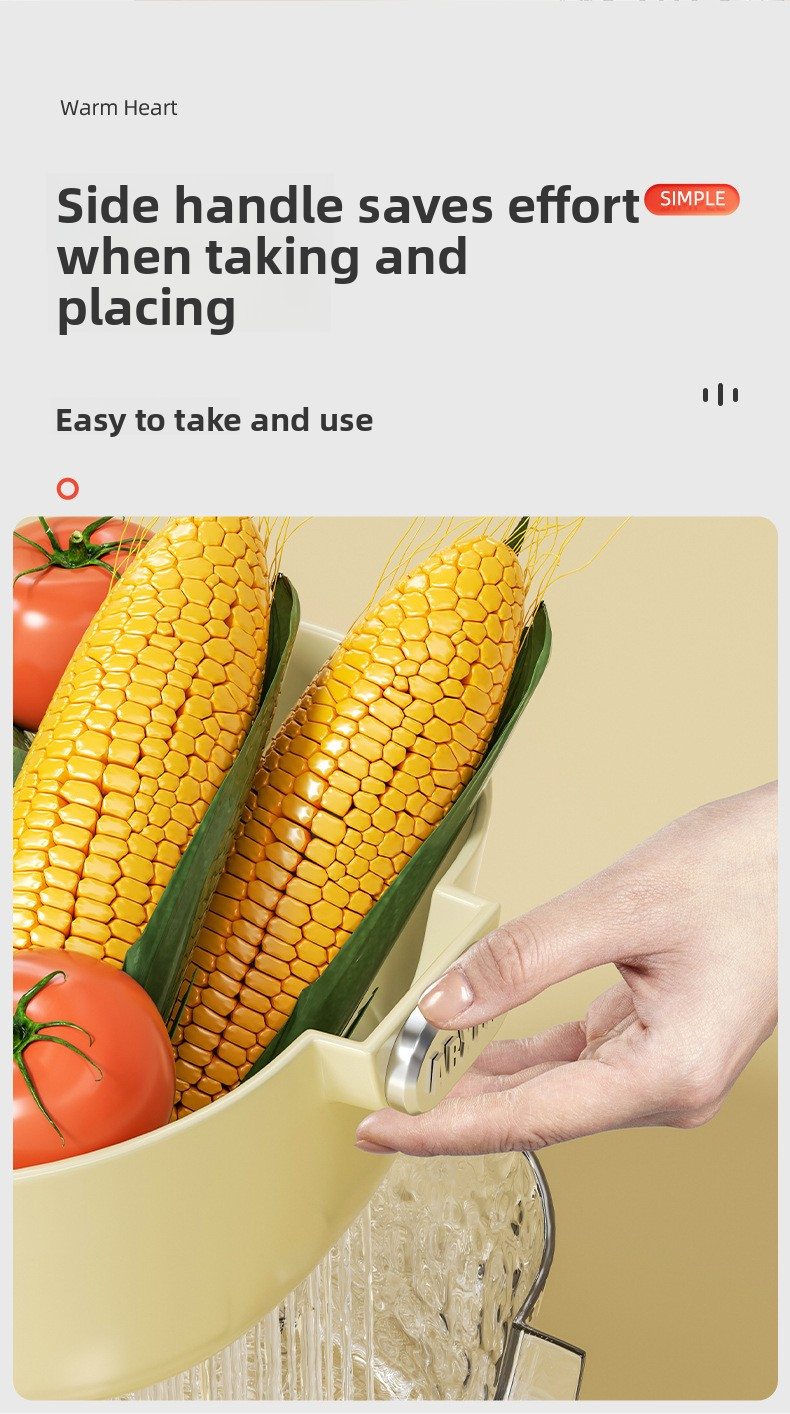 Double-layer draining basket for washing fruits and vegetables in the kitchen