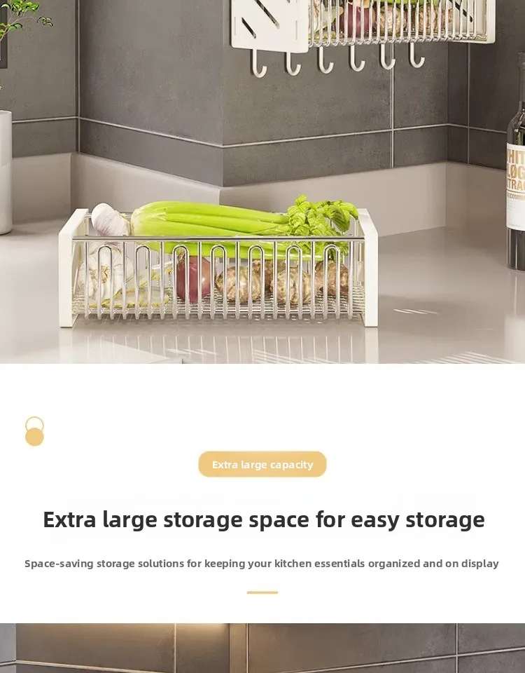 Wall-mounted seasoning rack for ginger, onion and garlic in the kitchen