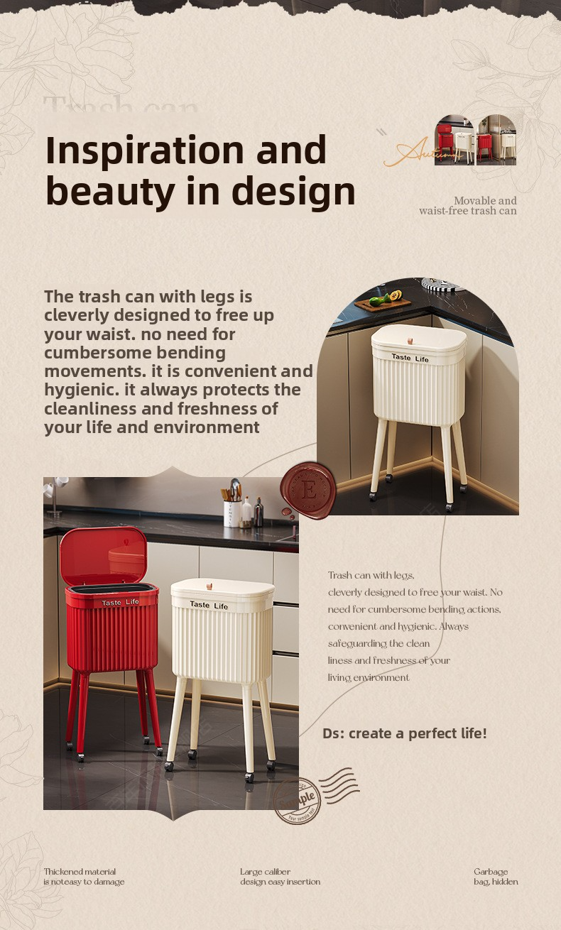 Large-capacity mobile wheeled high-foot trash can for living room, bedroom, kitchen and bathroom, no need to bend down for home use