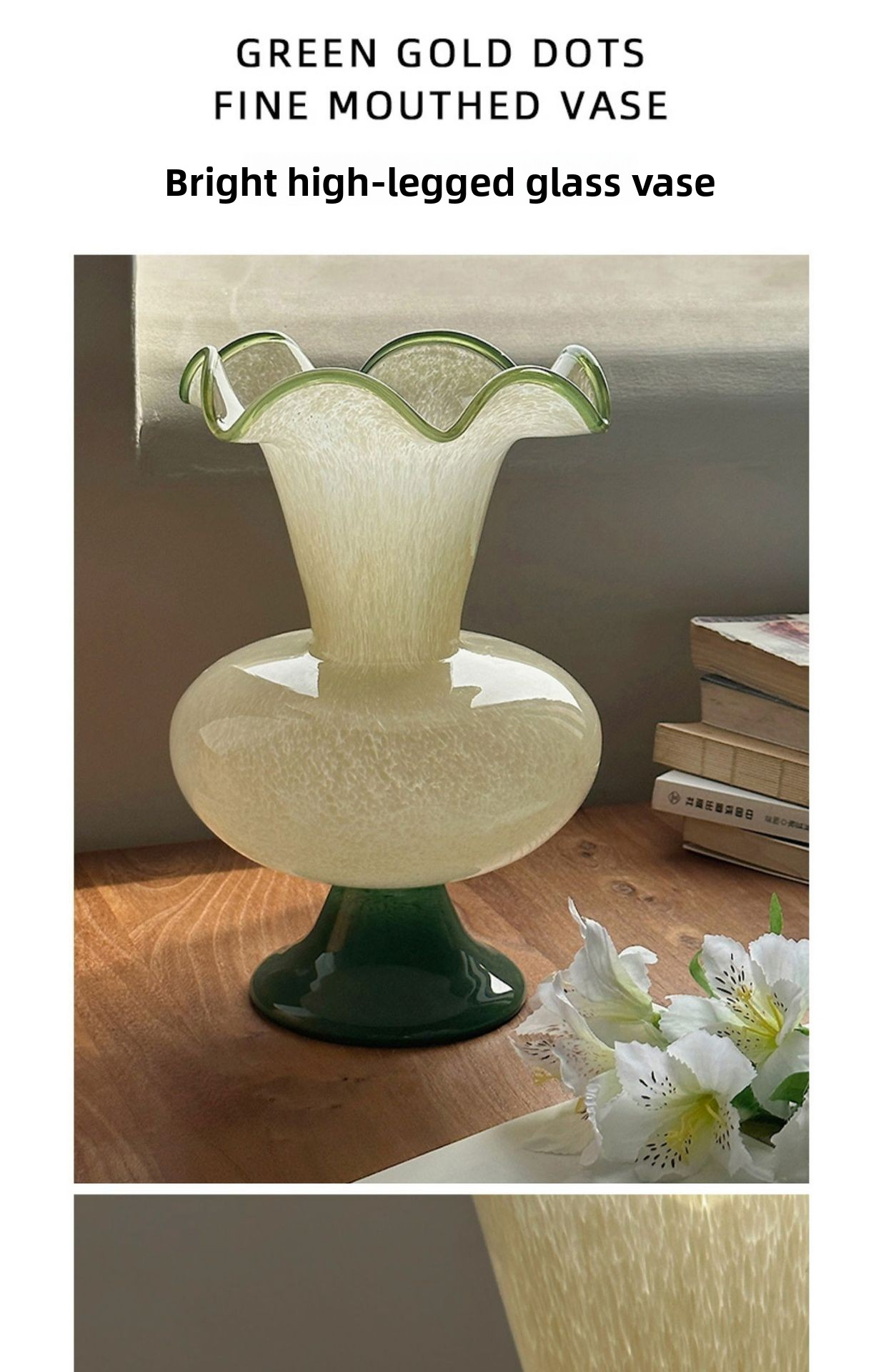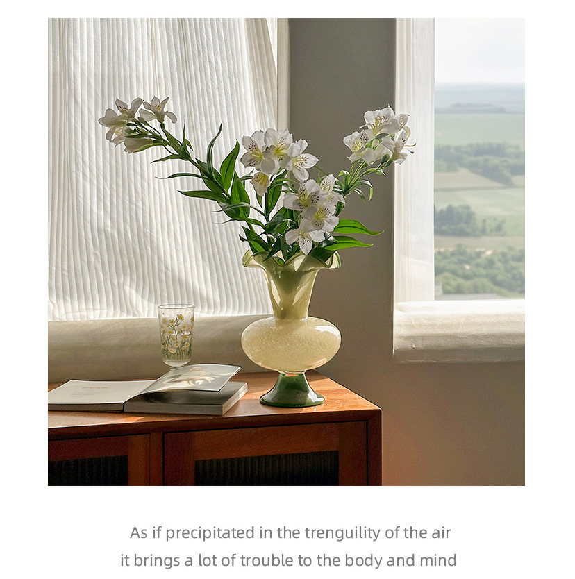 Wabi-sabi style green Fenton glass vase