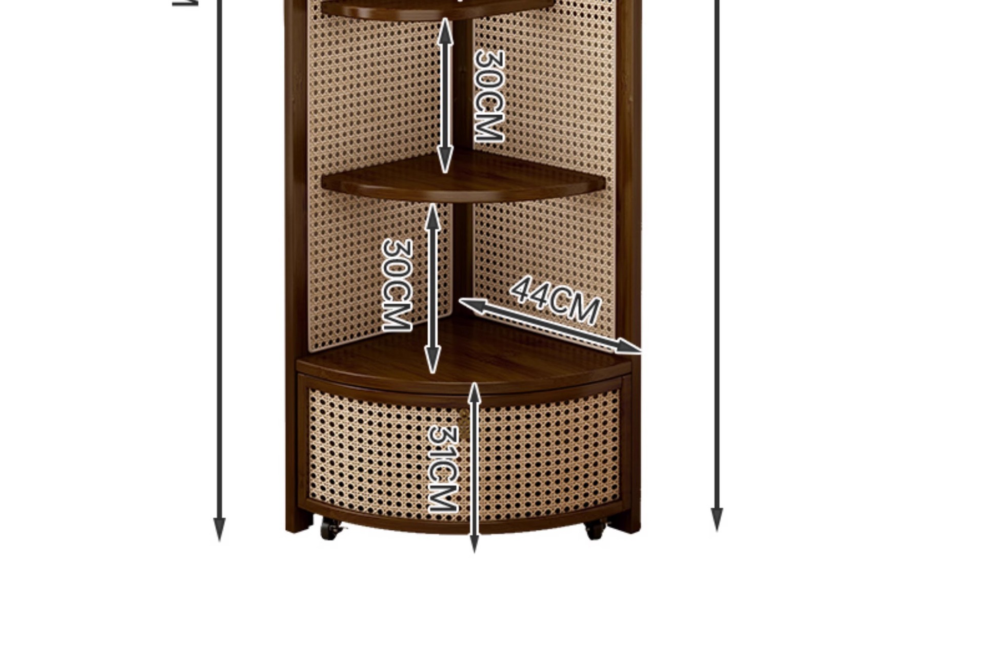 Walnut-colored rattan corner shelf (with basket)