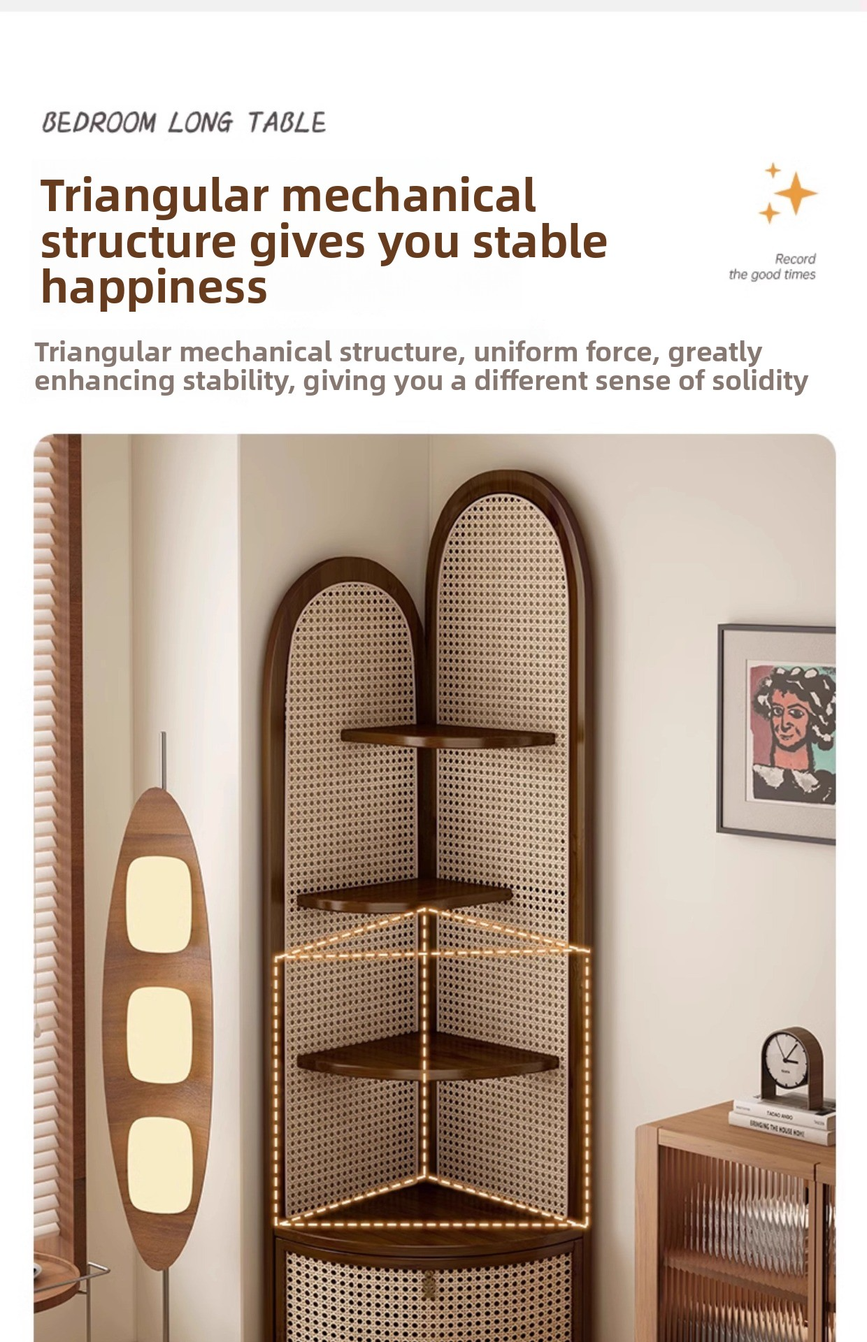 Vintage solid wood triangular corner cabinet shelf