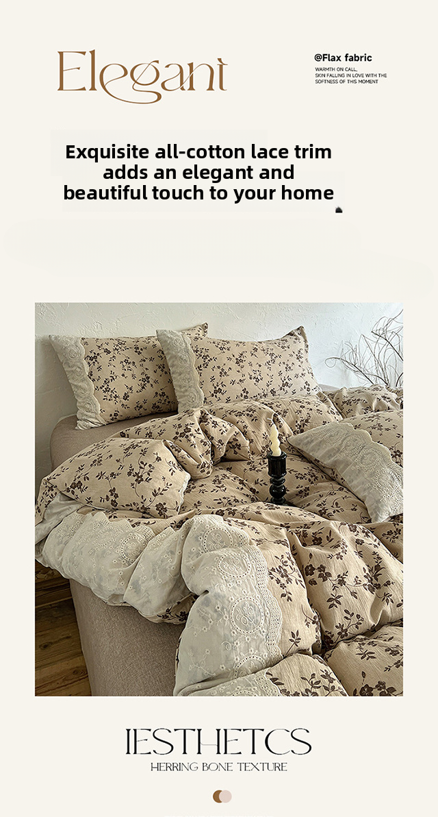 New autumn and winter linen retro all-cotton lace four-piece set