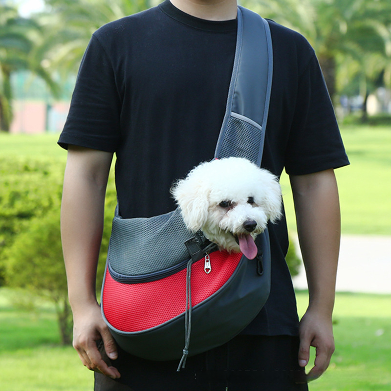 Crossbody pet bag for outdoor use, portable with breathable mesh