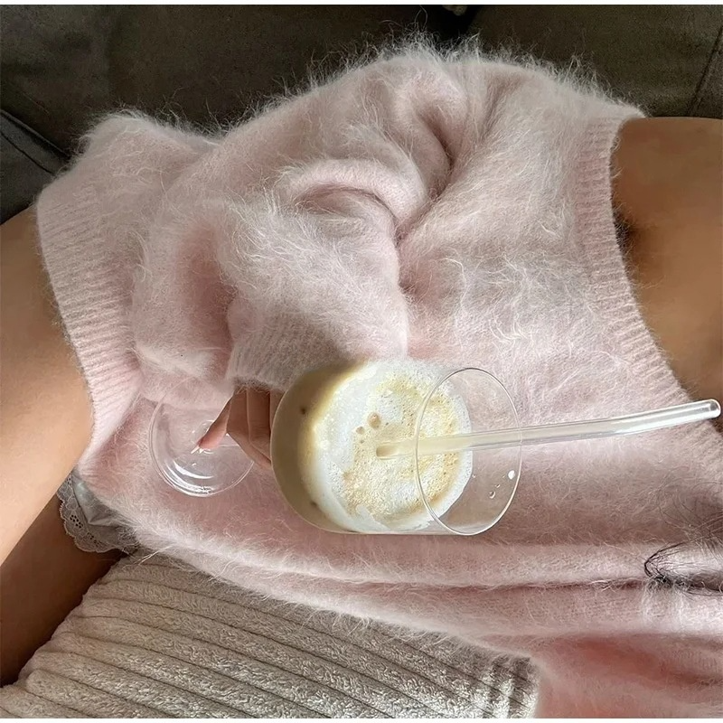 Fluffy Mohair off shoulder Cropped Sweater Oversize Slouchy