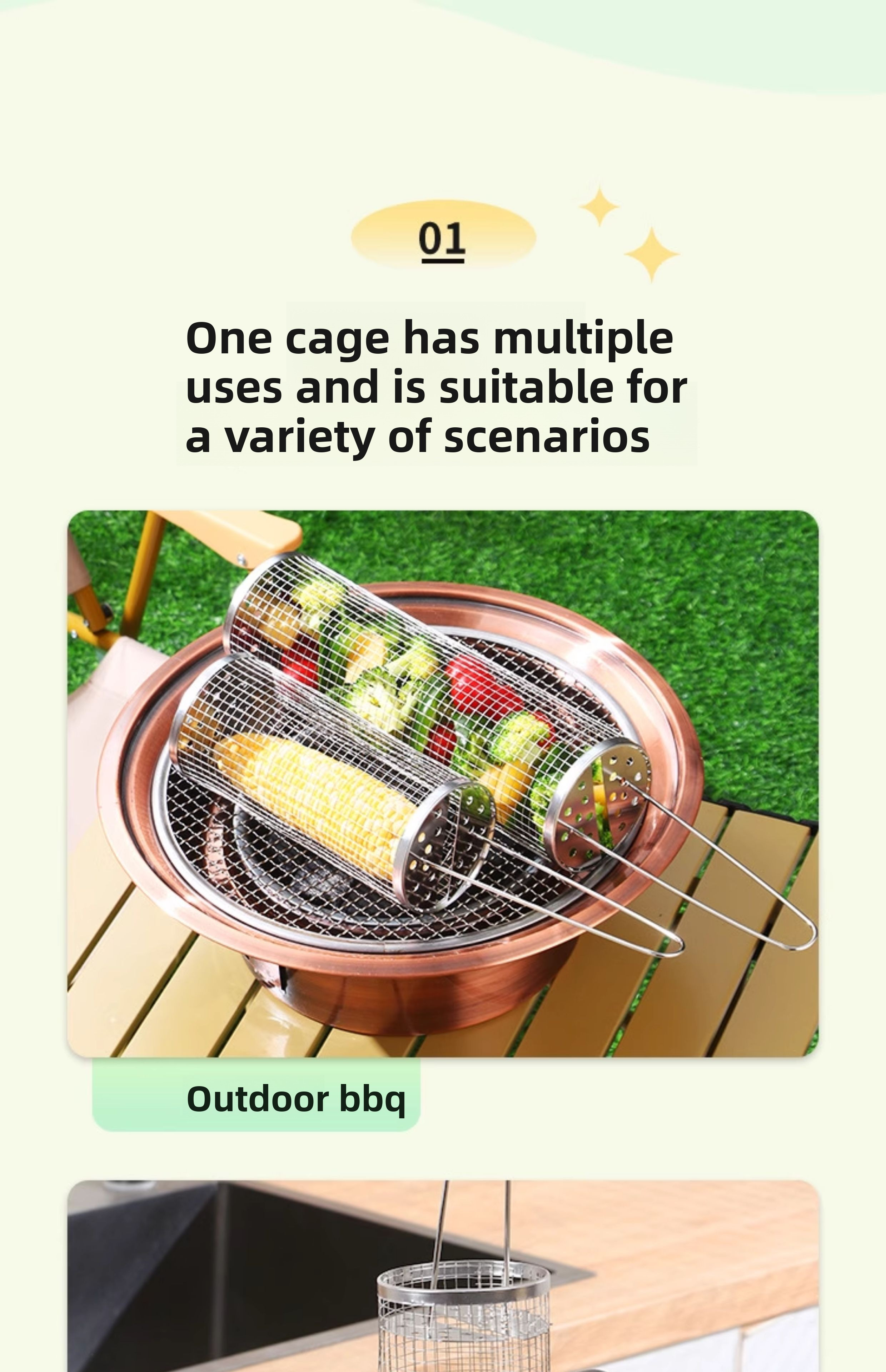 [1 Piece] Large Barbecue Cage - Stainless Steel Handle [Kraft Paper Box Packaging]