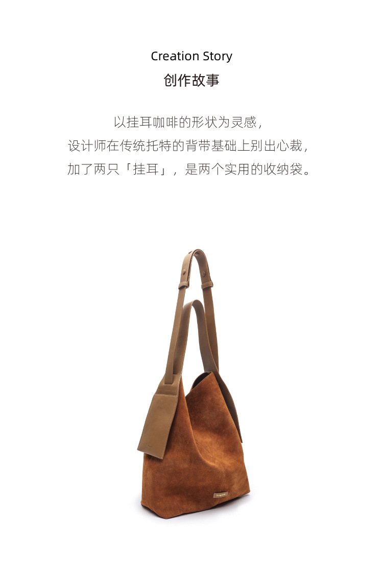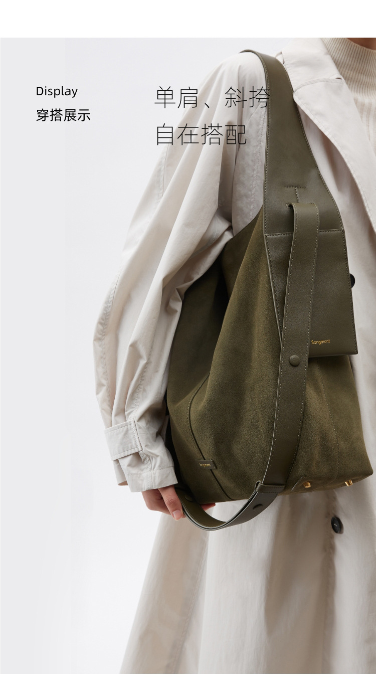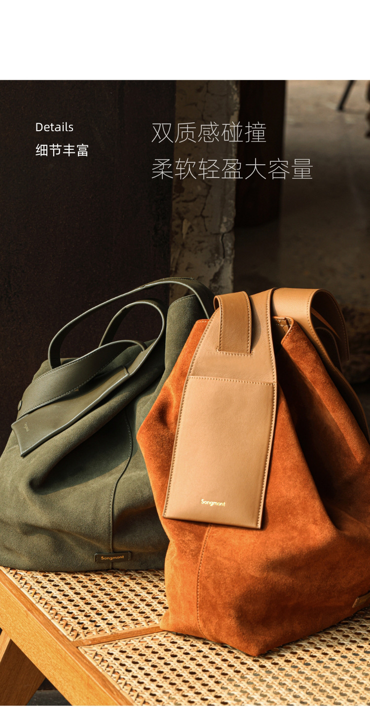 Songmont Yamashita Arimatsu Suede Ear-Hanging Tote Bag Lazy Commuter Shoulder Crossbody Bag Bucket Bag Large Bag