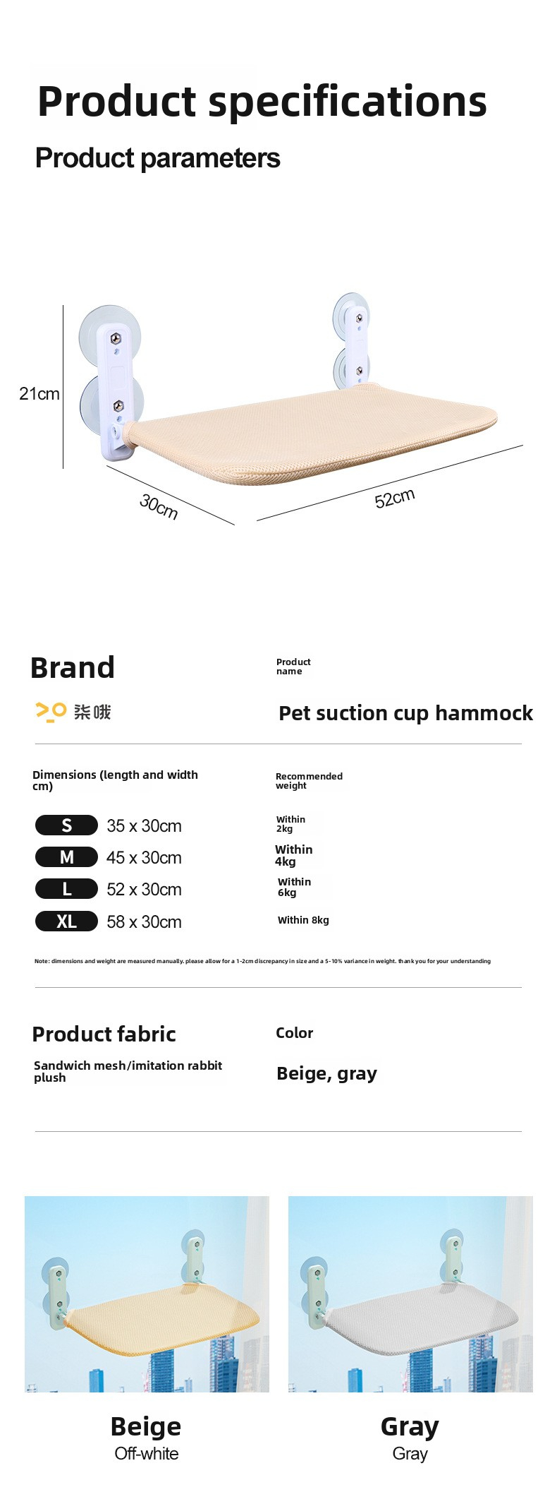 XL: 60 × 31 × 5 cm