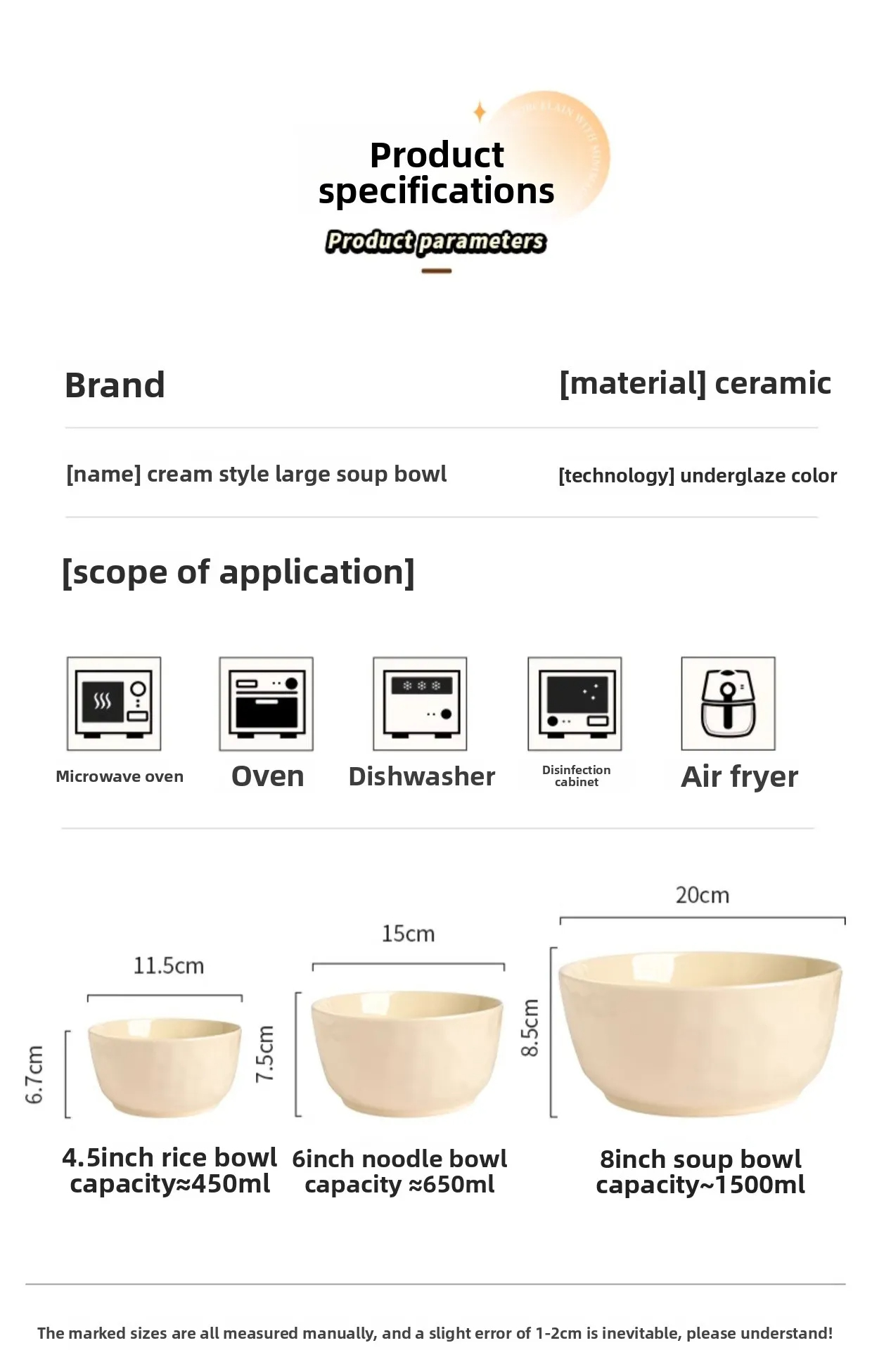8-inch large household soup bowl, large ceramic instant noodle bowl